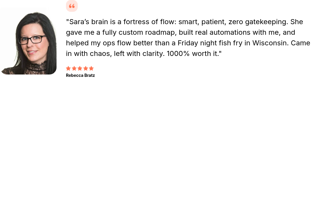 A fully documented operational foundation — rebuilt systems, clear, automated workflows, and repeatable rhythms you and/or your team can actually follow.
